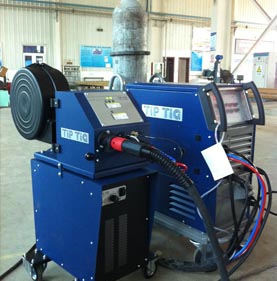 TIP TIG(TT)動態熱絲鎢極氬弧焊接技術被稱為“超級氬弧焊”,TT實現穩定的對熔池的振動攪拌功能,不但有效地破壞熔池及熔滴表面張力、細化晶粒、顯著降低熱輸入、易于熔合,而且使熔池中產生和裹挾的氣體容易逃逸,顯著減少氣孔、未熔合、熱裂紋等焊接缺陷,從而保證焊縫具有優良的冶金、化學性能和機械力學性能。比普通氬弧效率高4倍;比熱絲氬弧焊效率高2-3倍;TT焊實現了與MIG焊相當的焊接效率,得到超過普通氬弧TIG 焊的焊接質量;TT 全自動焊接系統表現出卓越的質量和效率的雙重優勢。無飛濺、無需層間打磨、單一氬氣保護,因此,TT獲得2008年荷蘭烏德勒斯國際焊接技術展覽會金獎評語 “Revolution in welding technology”。