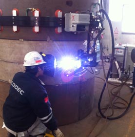西安泰普在CRA雙金屬復合管的管口堆焊、管口加工、CRA雙金屬復合管海底管線的海上鋪設焊接項目中,提供了TT半自動和TT全自動焊接設備系統以及全套焊接工藝解決方案,其中的設備、工藝技術填補了國內在此領域的空白;前后為中國海洋石油公司的4個海底CRA雙金屬復合管線項目,總計約110公里的海上鋪設焊接施工,提供全程技術服務支持和焊接設備系統維護保障服務,焊接質量和效率均達到國際先進水平;其中的一個項目(8寸和10寸復合管各8KM和12KM)采取陸地預制接長、膨脹彎預制以及海上鋪設焊接施工獨立分包的方式,為項目提供CRA雙金屬管道焊接總承包施工服務;其次,西安泰普還為 LNG建造、造船部件制造,高鐵車體制造,壓力容器制造、核電等行業的不銹鋼系列、鋁合金、鎂合金、鈦合金、銅合金、鎳合金等特種材料的焊接方面,為客戶提供半自動、專有全自動焊接設備平臺以及焊接工藝解決方案。